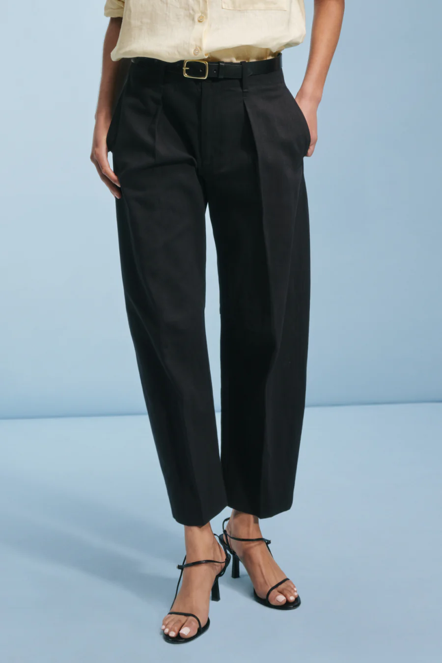 An everyday luxury. Baby barrel leg with classic menswear pleats for a laidback silhouette that makes even the humble tee look polished. Â