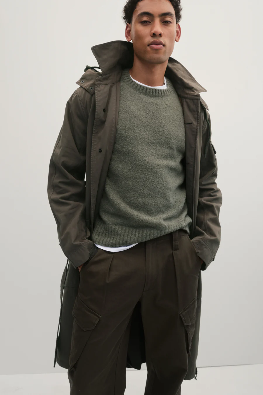 Collector's edition. We only made 60 pieces. Double ply cotton canvas construction, with the works: a belted waist, removable hood, gusseted rear vent. No detail was spared. Don't miss out on this one.